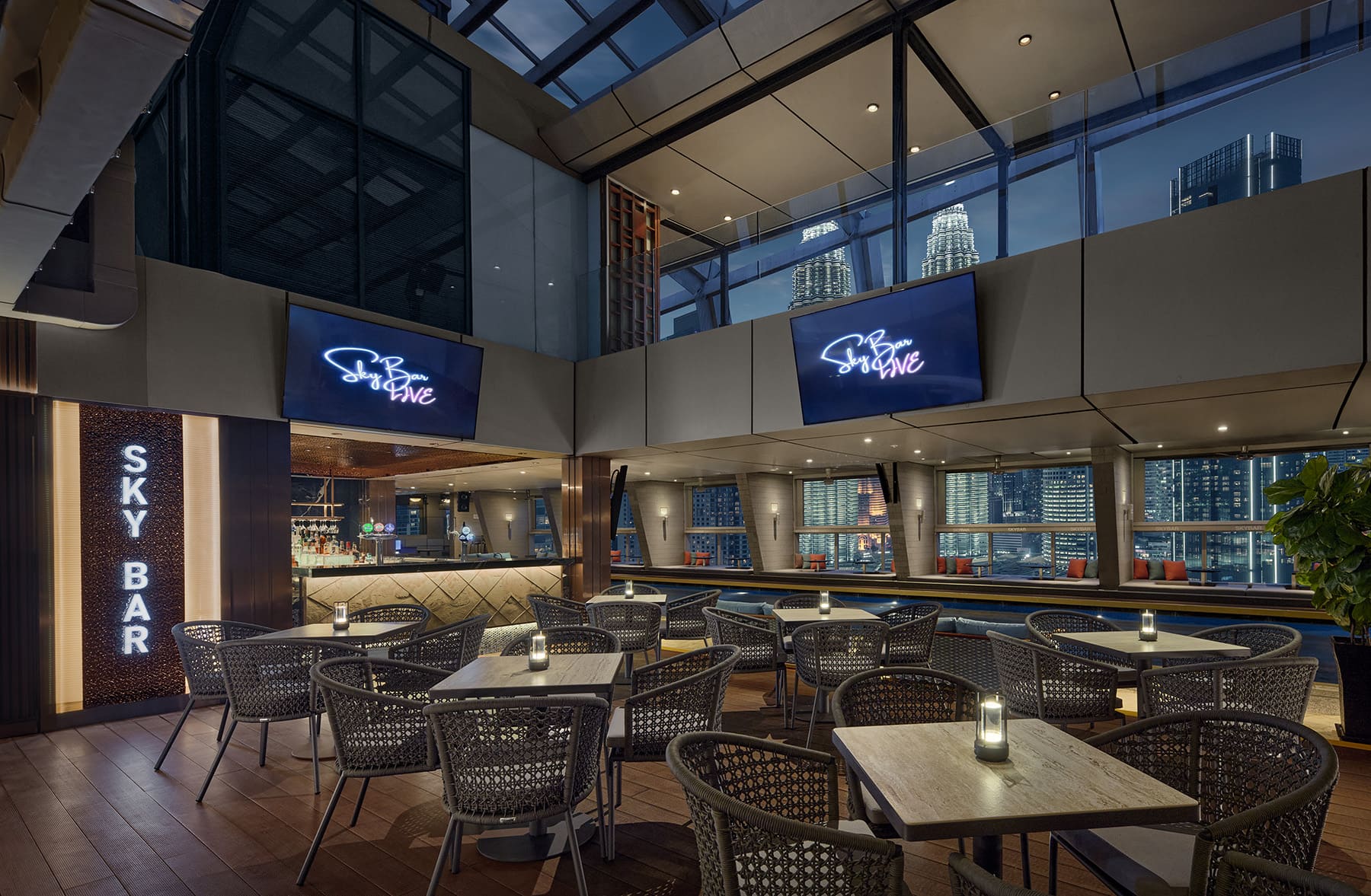 Enjoy beautiful view of Twin tower with one drink and snack.