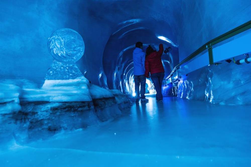 Enjoy the spectacular sight of the glacier's deep crevasses and gigantic ice boulders