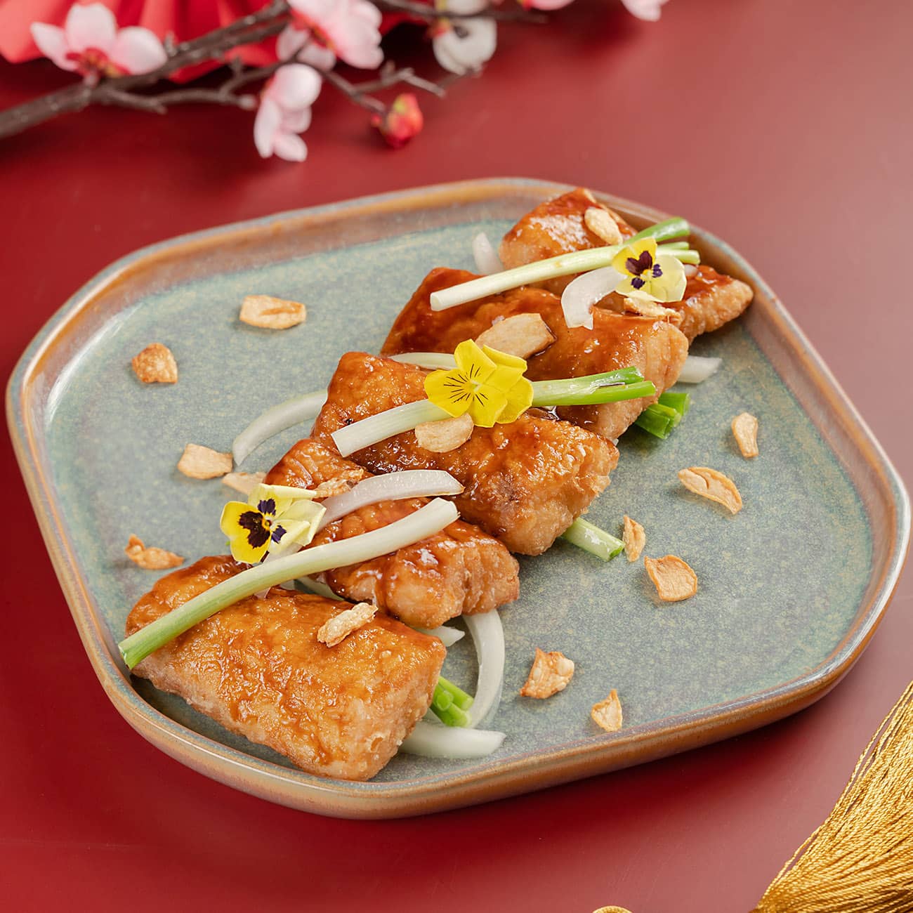 STARTER | KHAI VỊ BBQ Pork Char Siu with Mandarin Orange Flower Honey Xá Xíu Quay với Xốt Mật Ong Hoa Cam Bamboo Charcoal Har Gow | Scallop & Spinach Dumpling Cảo Tôm Tinh Than | Cảo Bó Xôi Sò Điệp Bích Lục MAIN COURSE | MÓN CHÍNH Steamed Sea Bass Fillet in Black Bean Garlic Sauce Cá Chẽm Phi Lê Hấp Tàu Xì Sweet & Sour Pork Man Ho Style Heo Chua Ngọt Kiểu Manho Wok-Fried Kailan with Garlic Cải Rổ Xào Tỏi Crab Meat Fried Rice with Flying Fish Roe Cơm Chiên Thịt Cua & Trứng Cá Chuồn DESSERT | MÓN TRÁNG MIỆNG Wolfberry Water-Chestnut Jelly Cake Thạch Rau Câu Cẩm Tú Cầu