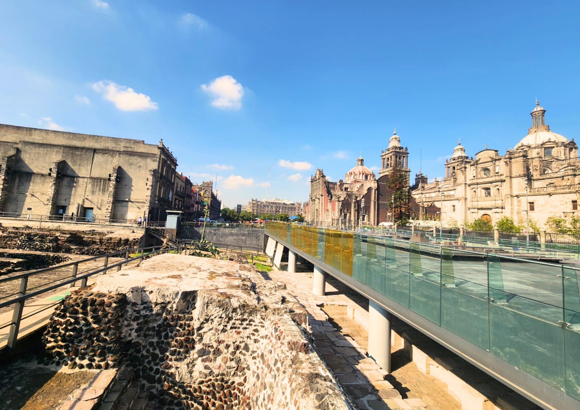 ソカロ広場、国立宮殿(外観)、大聖堂(外観)、テンプロマヨール遺跡(外観)