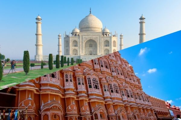 We will start the tour from Agra.It is famous for Taj Mahal(symbol of love) which is present as one o… | f the 7 Wonders of the World because of its immense beauty. It was built by the Mughal emperor ShahJahan in the memory of his favorite wife. Then visit Agra Castle, where Shah Jahan was imprisoned. We will also head to the marble factory where craftsmen do marble work, the same marble from which Taj Mahal was made.Every country has its own culture. If you want to explore India more then wear Indian national costume saree(male traditional costume Kurta). and click pictures in front of the Taj Mahal by wearing saree. HIS is presenting our New Activity which is Saree Rental(you can take saree for rent).In the Jaipur you can do elephant ride till Amber fort. After that you will visit Wind Palace. This palace contains 953 windows. You will also be guided to the Jantar Mantar. In the end you will visit City palace which was once the seat of kings and they guide the region from there.