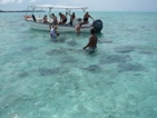 午前中にエイの餌付けとサメの見学、コーラルガーデンでのシュノーケリングを楽しんだ後、白砂のモツ(小島)にあるラグナリウム(天然のラグーンを利用した施設)に上陸。魚と一緒に泳げる。バーベキューランチの後はモツでの自由行動。