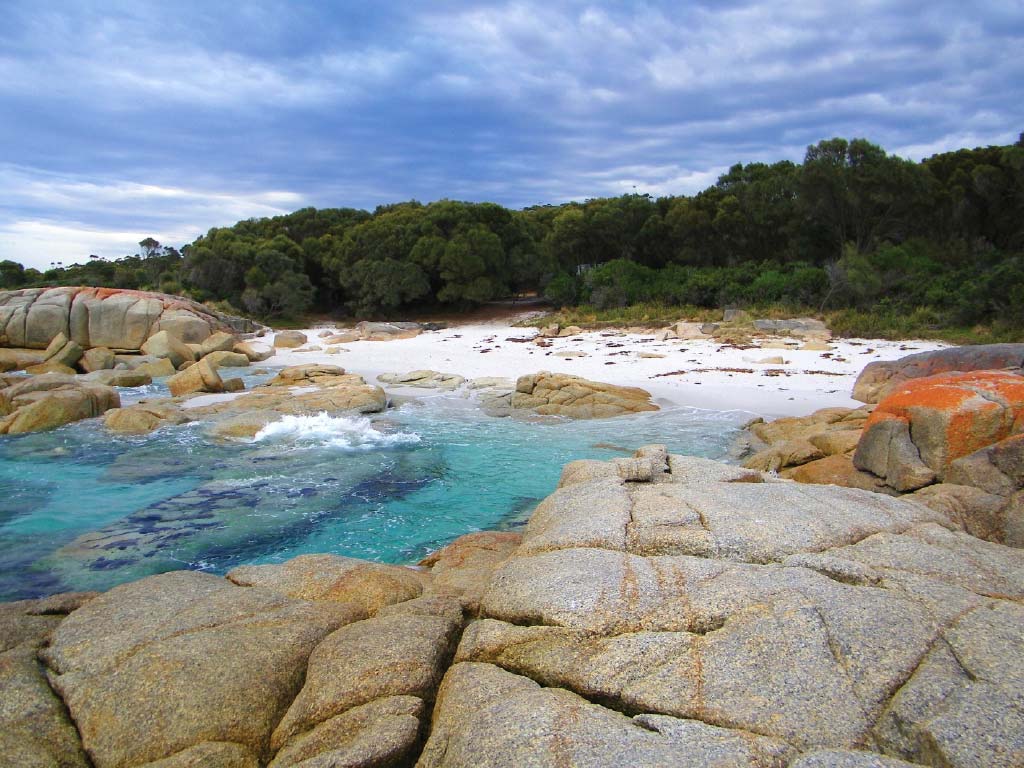 オレンジ色の花崗岩で有名なベイ・オブ・ファイヤー到着