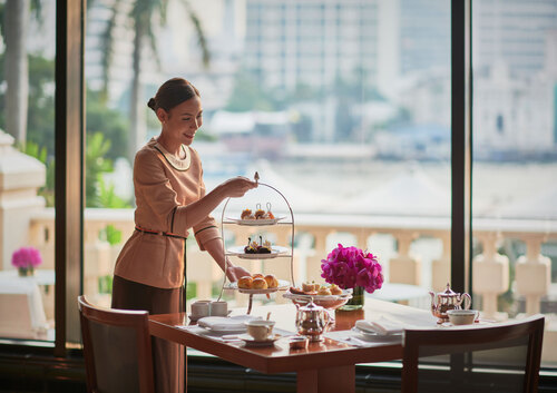 Afternoon tea in the famous Peninsula Hotel as a luxury hotel in Bangkok one of the best. Please enjo… | y luxurious time in the lobby lounge of the Hotel Chao Phraya River flows in front of you.
