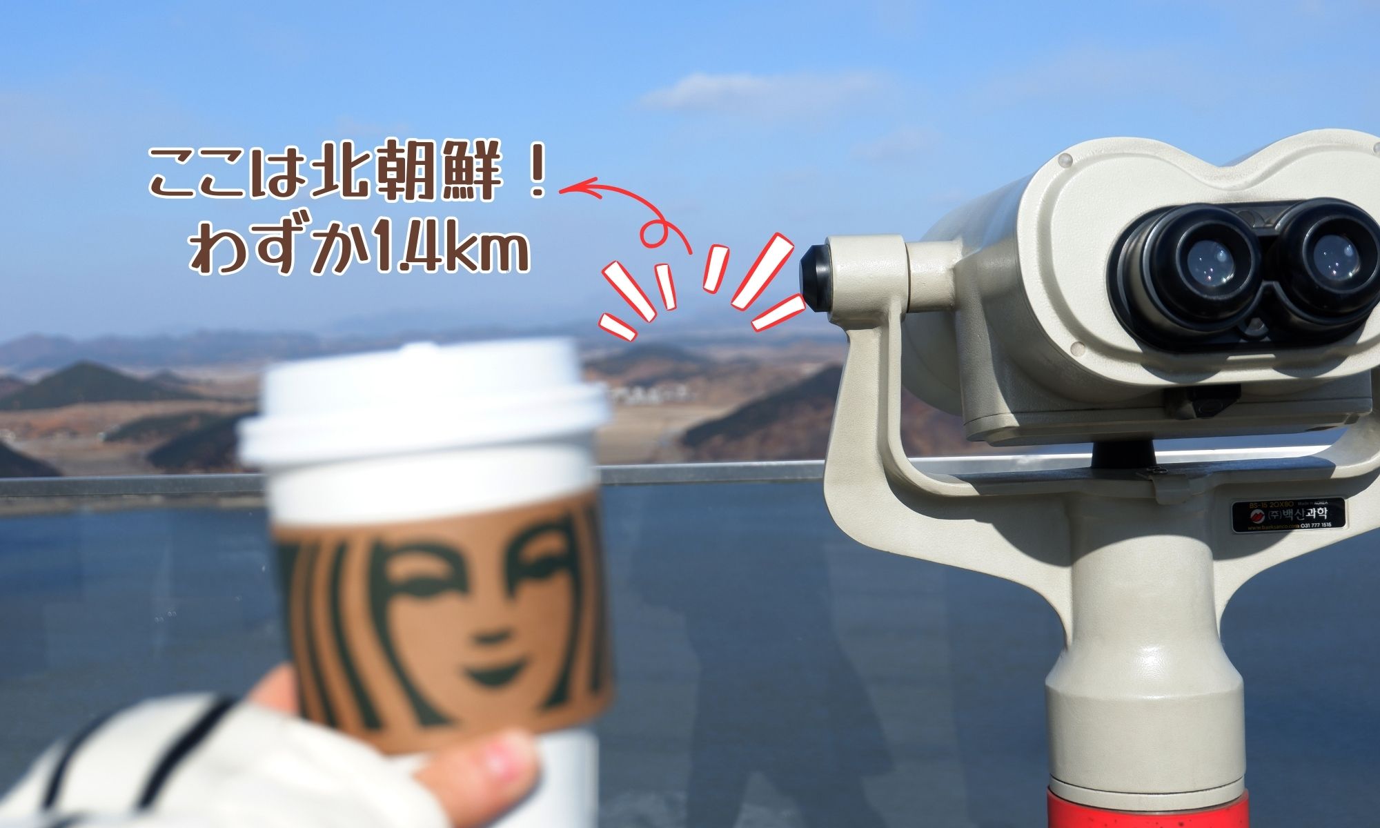 北朝鮮からわずか1.4km! DMZから一番近い統制区域にある唯一のスターバックスへご案内します!自由に観光をお楽しみください。北朝鮮との関係やDMZの歴史を聞きたい方のために日本語ガイド付きツアーも… | ご用意しております。