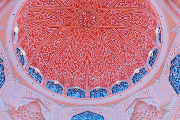 外壁から内装に至るまでピンク色を基調としたデザインが特徴的なピンクモスク。